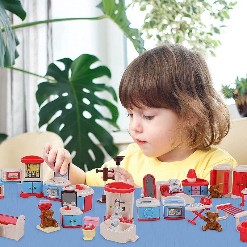 With over 45 Pieces and Accessories, this Dollhouse All in One Set Comes Complete with everything you needto Keep Children Busy for Hours on End- They'll Love Using the Many Furniture Pieces and Accessories that Look Just Like the Real Thing!
