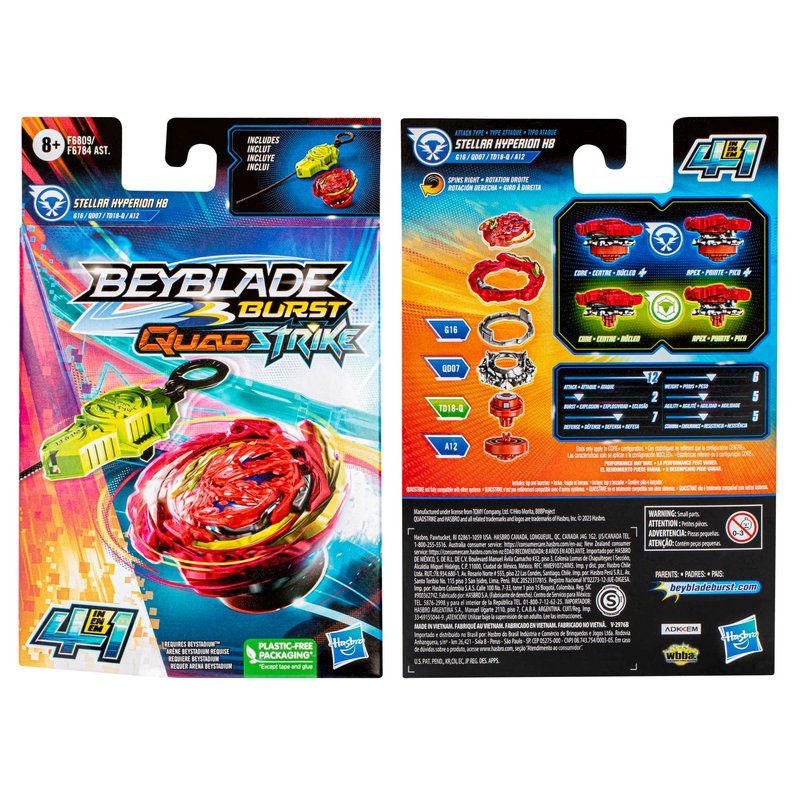 - CUSTOMIZE THE CLASH: Includes 1 right-spin Beyblade Burst QuadStrike Stellar Hyperion H8 G16 QD07 TD18-Q A12 top and launcher. Customize top to Core and Apex mode for defense type or to Core+ and Apex+ mode for attack type