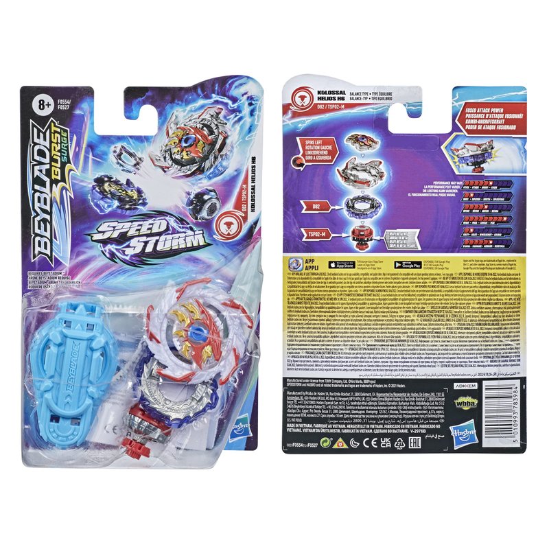 - SPINNING TOP FOR BEYBLADE BURST BATTLES: Includes left-spin Beyblade Burst Surge Speedstorm Kolossal Helios H6 D82 TSP02-M balance type top and launcher