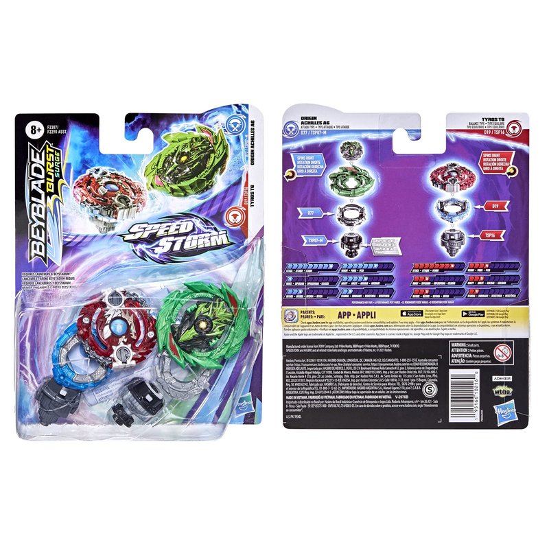 Beyblade Burst Surge Speedstorm Origin Achilles A6 and Tyros T6 Spinning Top Dual Pack -- 2 Battling --Game Top Toy for Kids Ages 8 and Up