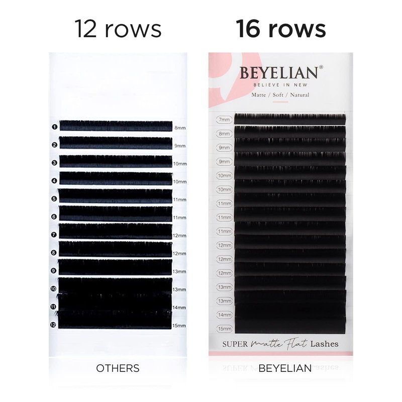 BEYELIAN Eyelash Extensions, Individual Lashes, 0.20mm C Curl 16mm Super Matte Classic Lash Extensions, Ellipse Flat Eyelash Extension, Light and Soft Natural Look for Professional Salon Use