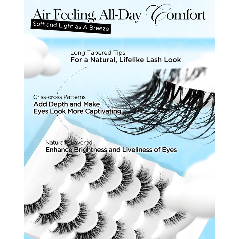 - 【Soft, Wispy & Natural】 BEYELIAN natural false lashes redefine comfort and style with their ultra-soft texture, long tapered ends, naturally layered effect and criss-crossed design. The long tapered ends and gentle curls blend seamlessly for a wispy, natural look perfect for any occasion