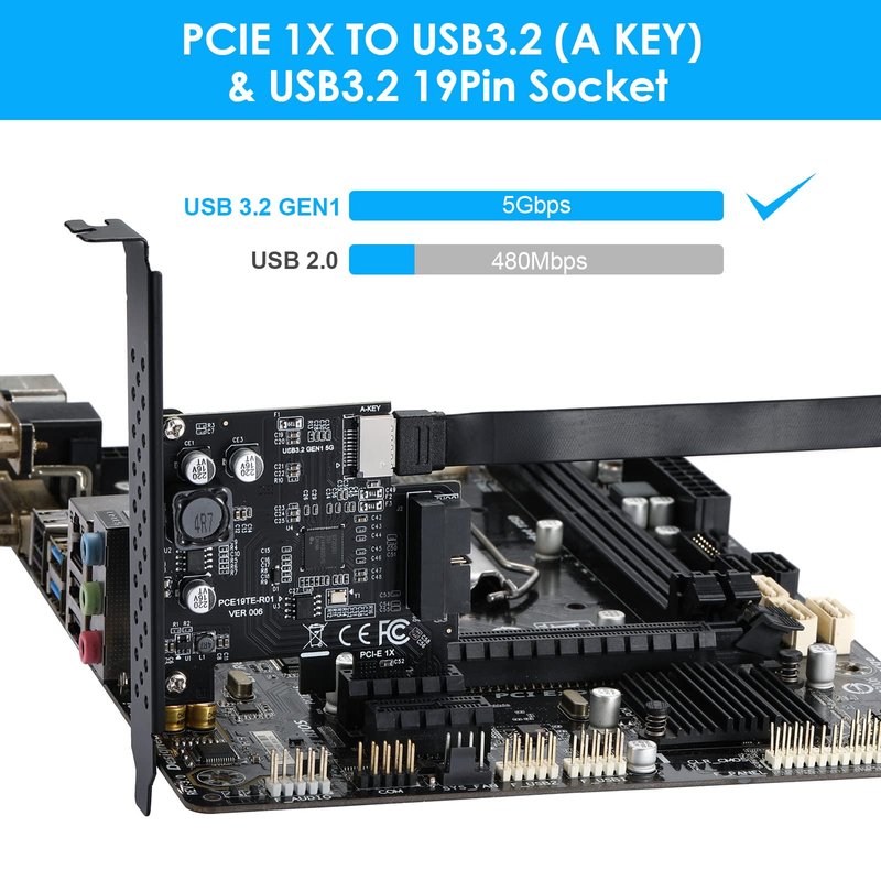 - ✅PCI-E to USB3.2 GEN1: This adapter is a converter that converts the motherboard's available PCI-E 1x to USB 3.2 GEN1 connector + 20-PIN socket.