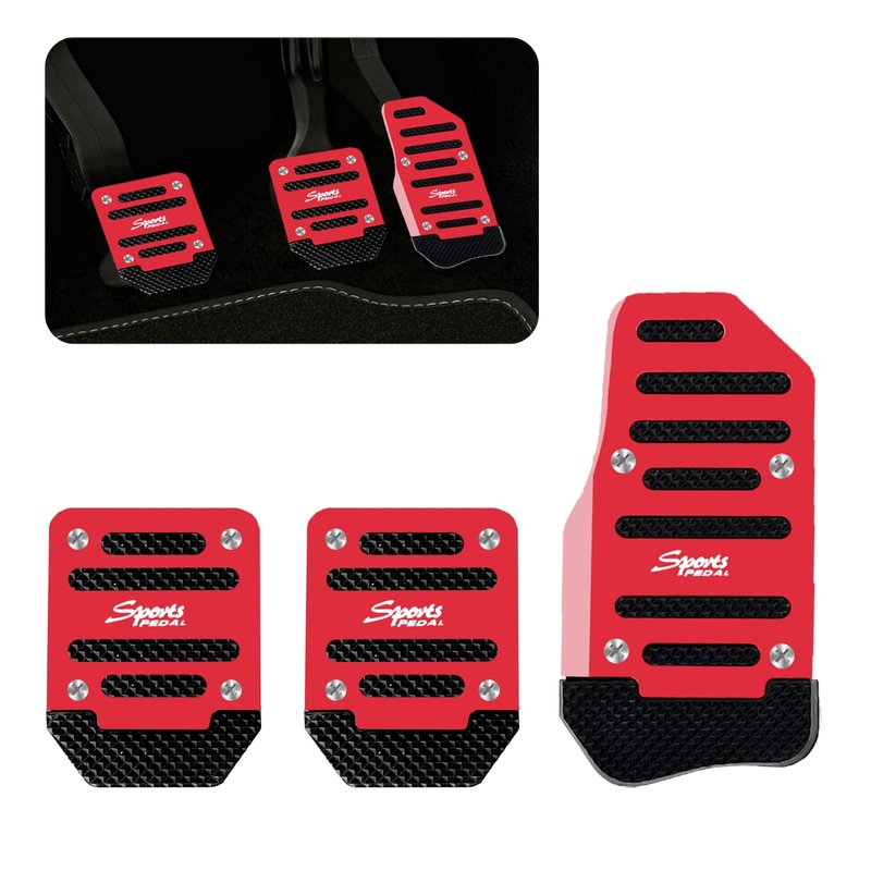 beypovk 3PCS Nonslip Car Pedal Pads, Auto/Manual Aluminum Alloy Gas Pedal Clutch Brake Pad Cover, Auto Universal Interior Accessories (Red)