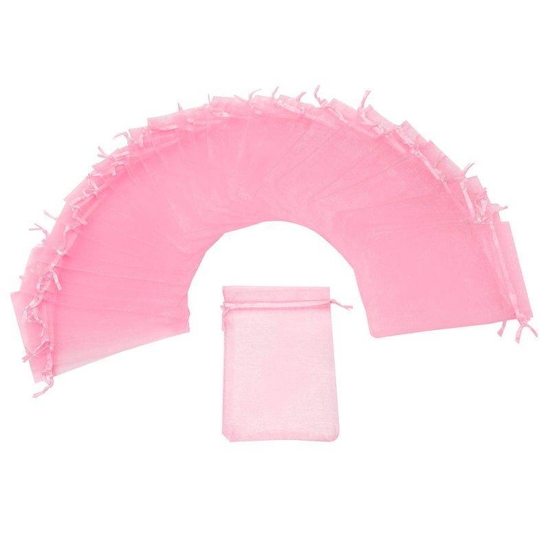 Bezall 100Pcs Organza Bags 5x7 Inch, Pink Sheer Baby Shower Party Favor Bags with Drawstring, Mesh Jewelry Gift Bags Wedding Candy Pouches