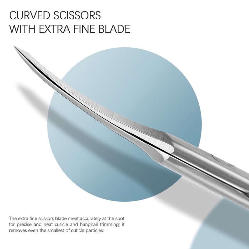 - ✄CURVED SCISSORS WITH EXTRA FINE BLADE: The curved, extra fine scissors blade meet accurately at the spot for precise and neat cuticle and hangnail trimming; it removes even the smallest of cuticle particles.