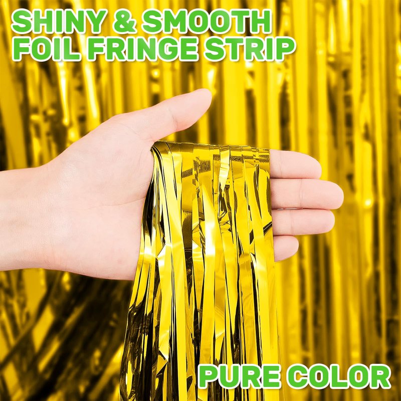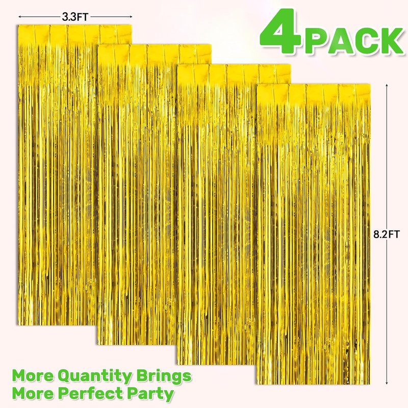 - 【Value Pack of 4】 Our party decoration supplies include 4 packs of foil fringe curtains. More quantity than other products can provide you with better party decoration effect. The size of each tinsel curtain is 3.3ft x 8.2ft(plus or minus 0.06ft error), it's long enough to fit any occasion. The 4 pack Backdrops are available in a variety of beautiful colors with a shiny and reflective surface that creates an eye-catching and mesmerizing effect.