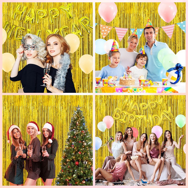 - 【Wide Applications】 As widely used decorations for parties,the 4 pack streamer foil curtains are suitable for creating sparkle nice atmosphere for Hollywood Party, Homecoming, Christmas, Birthday, Halloween, Theme Party, New Year Eve, Bachelorette Party, Engagement Party, Anniversary, Bridal Shower, Baby Showers, Graduations and more. Elevate your party with our 4 pack tinsel streamers and add a touch of glamour and excitement to your celebration.