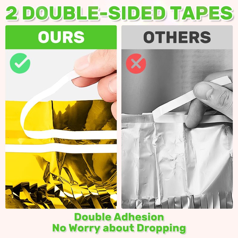 【Double Adhesion】 Considering that other backdrops tend to fall off and affect your party decorations and party mood, we deliberately added an extra strip of double-sided tape to provide double adhesion.