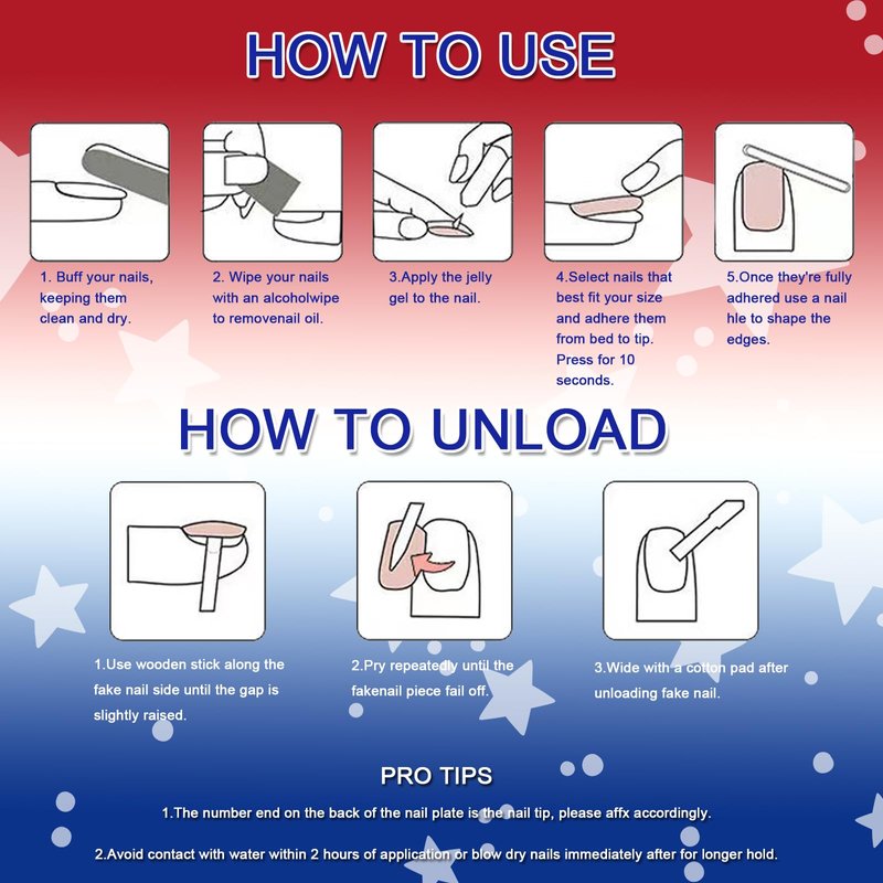 - 【Comfortable to Use】-- These Independence Day acrylic nails are designed according to the curvature of female nails, with moderate thickness, natural fit, more natural effect, and comfortable to use.