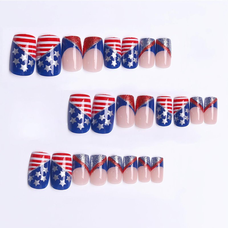 - 【Patriotic Nails】-- BFY's 4th of July press on nails with stars designs, full of patriotic elements, will make your fingers more unique and shiny, express your nail charm. Making your Independence Day holiday more interesting.