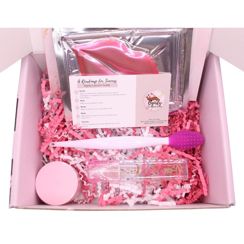 Take care of your lippies with Bgirly Lip Care Kit! Handmade, deliciously scented and flavored lip oils and lip scrubs you're sure to love! Also included in the kit is a silicon scrubber brush and collagen lip mask that will elevate your lip care routine. Perfect for hydrating and nourishing dry, chapped lips. Gift someone a spa day for their lips with this pretty pink kit!