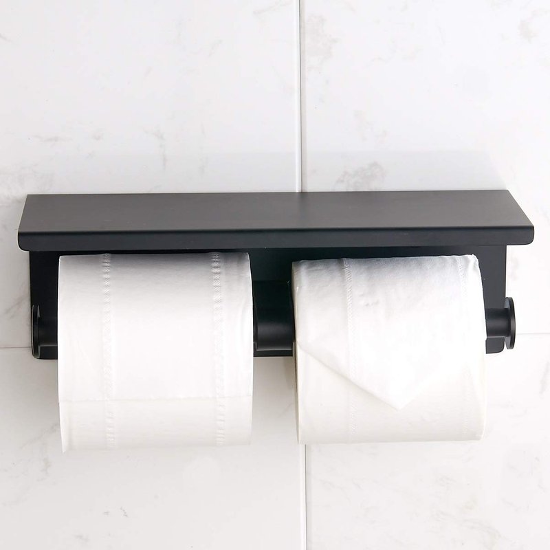 - 【Multifunctional & Space Saver】Double Toilet paper holder with storage shelf is good enough to hold mobile phone, cigarettes, ashtray, wrist watch, eye glasses, when you go to WC or have a shower.Great Organizer for Tissue and Phone and Etc. Great Substitute for Your Washing Room Decoration in An Inexpensive Way