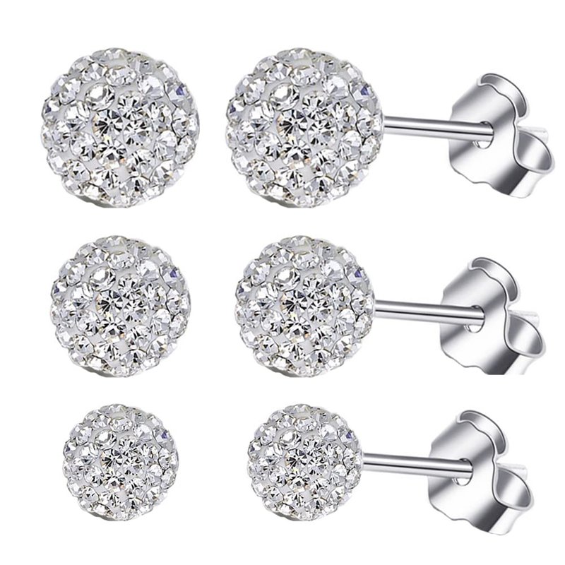 BG&WLing 3 Pieces Crystal Ball Stud Earrings Set for Women Girls, 3 Different Size Sparkle Disco Ball Earring Studs