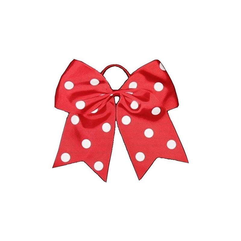 Bianca's Boutique New POLKA-DOT RED Cheer Bow Pony Tail 7 Inch Girls Hair Bows Cheerleading Practice Football Games Dance Uniform Hairbow Christmas Valentine's Grosgrain Ribbon