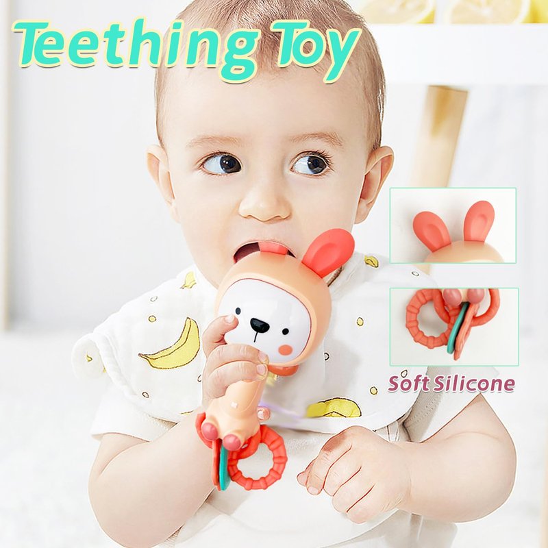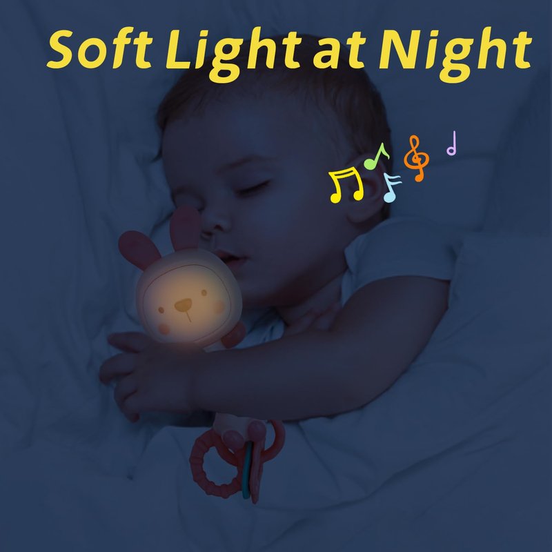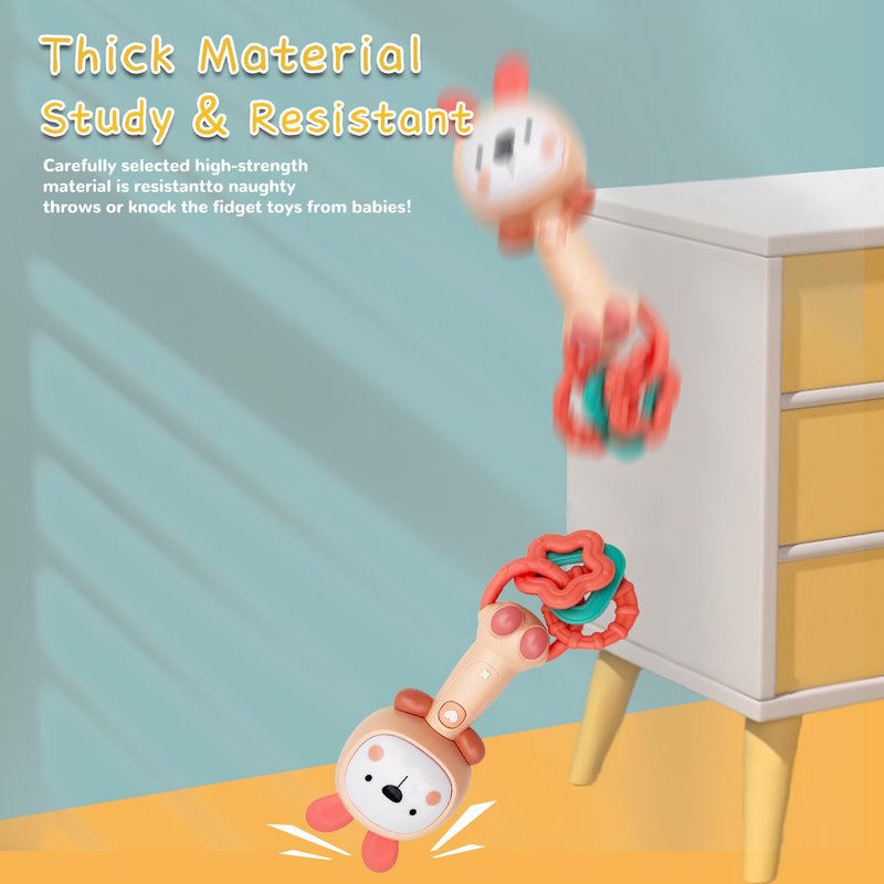 BIBEBRE Musical Rabbit Light-Up Toy and Teething Ring for Toddlers Sensory Chew and Fine Motor Skills Toy Baby Rattle and Teething Toys for 6 12 18 Month Babies (Rabbit)