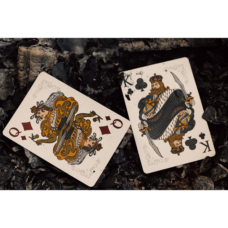 - Custom-designed court cards printed with warm, golden colors, reminiscent of glowing embers