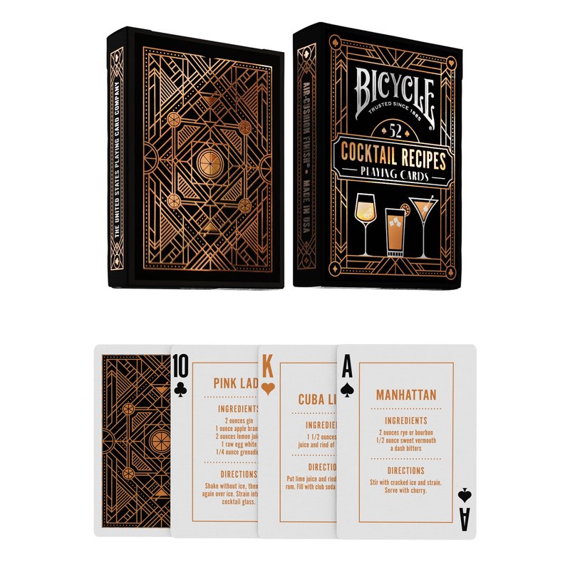 - FEATURES 52 COCKTAIL RECIPES ON EACH PLAYING CARD – Master Mixology with 52 cocktail recipes like Manhattan, Zombie, Pink Lady, and more!