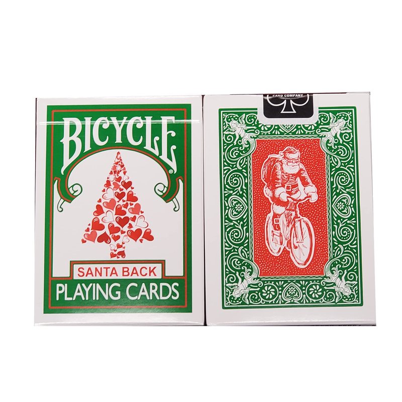 Poker Size Regular Index playing cards printed by the US Playing Card Company with a Christmas Theme. This is a standard deck of playing cards with 2 jokers that can be used to play most card games. The deck also contains extra magic cards with it that allow you to do the 3 card monte card trick.