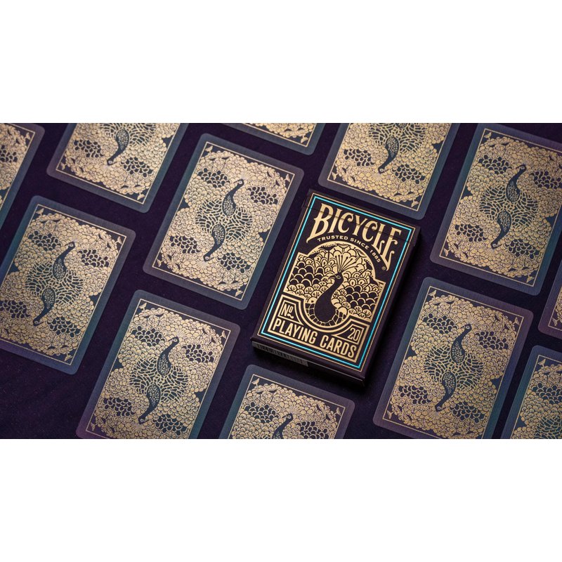 - EXQUISITE DESIGN: Our Bicycle Peacock Playing Cards feature stunning, peacock-inspired artwork and purple recoloring on the tuck and playing cards that adds elegance to any card game or magic performance.