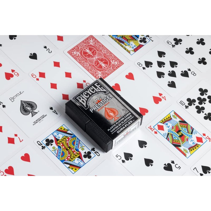 - WATERPROOF PLAYING CARDS: Discover Bicycle Prestige Plastic Playing Cards, adorned with the timeless, classic Rider Back design. These durable, waterproof cards provide unparalleled longevity for countless hours of gameplay
