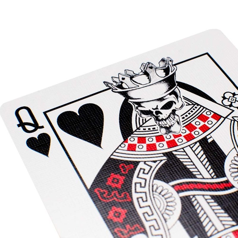 - Features Bone White Rider Backs & Midnight Black Pips With a Skull Ace of Spades