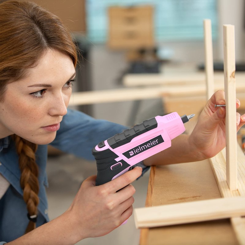 - Simple and Easy to Use:The 90°-180° rotating handle and 2 side switches make the pink electric screwdrivers head set's rotating handle suitable for working in narrow spaces. The front/back switch makes it easy to tighten and remove screwdriver heads,making it an ideal choice for female users.Additionally,the handle and anti-slip grip are ergonomically designed to ensure comfortable and stable operation.