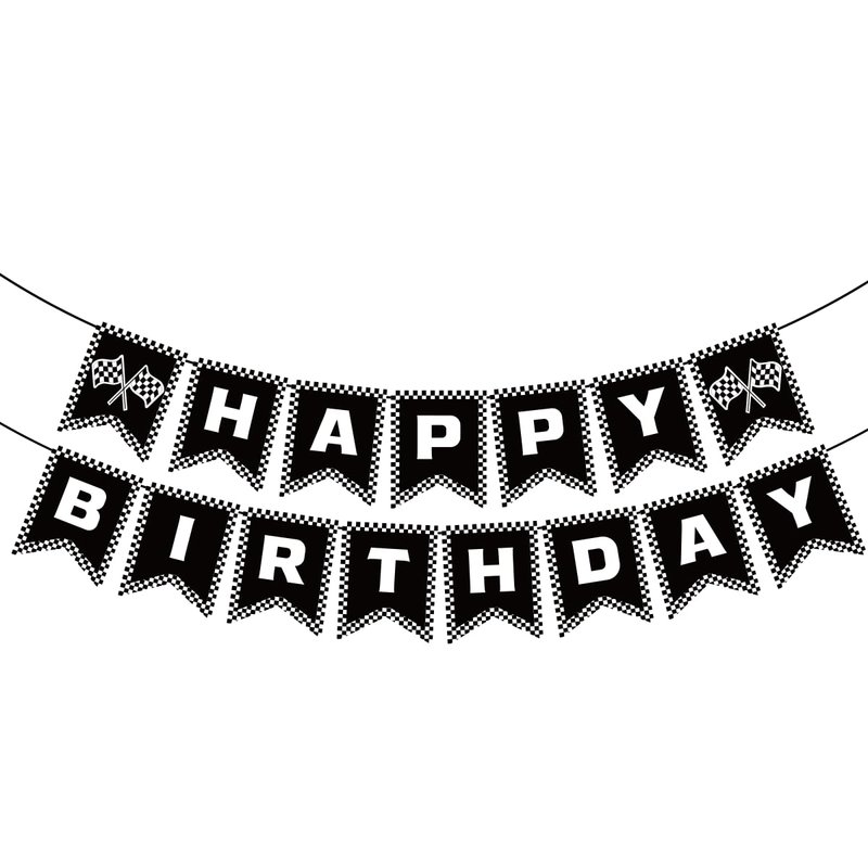 BIEUFBJI Race Car Birthday Banner, Checkered Happy Birthday Banner, Race Car Party Decorations, Racing Themed Party, Boys racing themed birthday decorations