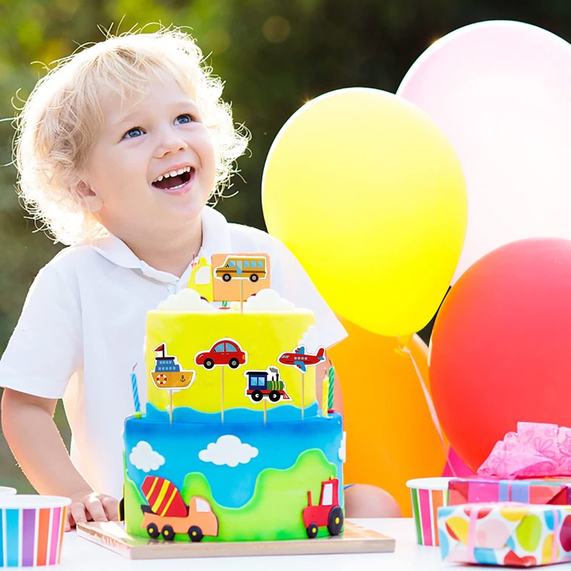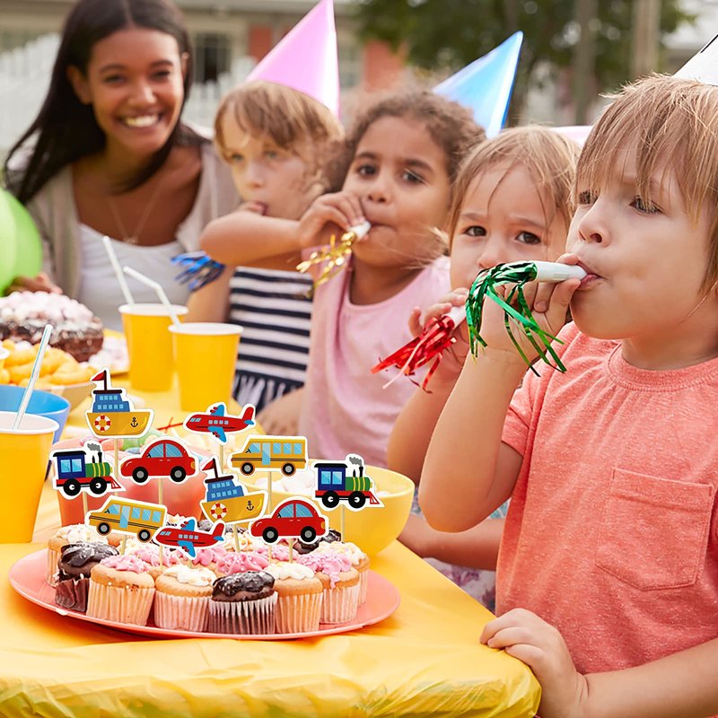 BIEUFBJI Transportation Cupcake Toppers 30 Pack Car Truck Train Airplane Ship Party Cake Toppers Picks for Kids Birthday Baby Shower Party Decorations Supplies