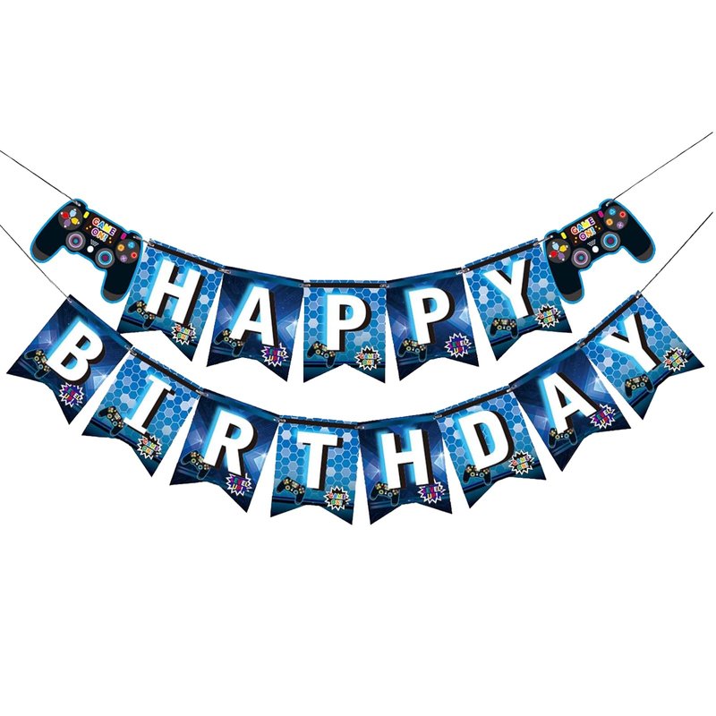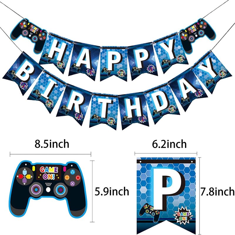 BIEUFBJI Video Game Happy Birthday Banner (Blue) Gaming Birthday Party Decorations for Kids Player Gaming Themed Party Decorations Assembled