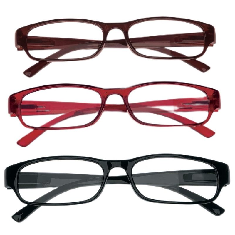 Bifocal reading glasses help you see clearly near and far. With non-magnified uppers and magnified lowers, you can comfortably read and watch TV at the same time, and they're ideal for anyone who wears contact lenses. Set of 3 stylish bifocal readers is perfect for men or women and includes black, red and brown. Available in 6 magnifications; choose from +1.5x, +2.0x, +2.5x, +3.0x, +3.5x or +4.0x. Lightweight acrylic eyeglasses with polycarbonate lenses.