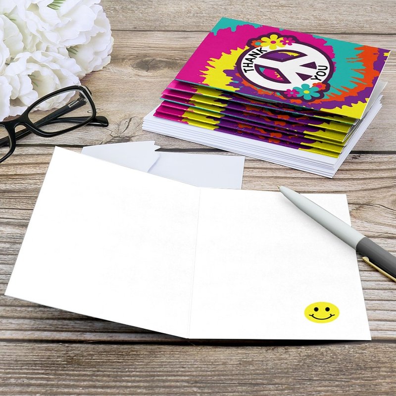 - PREMIUM THANK YOU CARDS: 60's Hippie party thank you cards are professionally printed on heavy-duty cardstock paper with a photo-like shine. They are then hand-folded and individually inspected, then carefully packaged with our exclusive squiggle flap envelopes, making this stationary set a must-have for Sixties party.