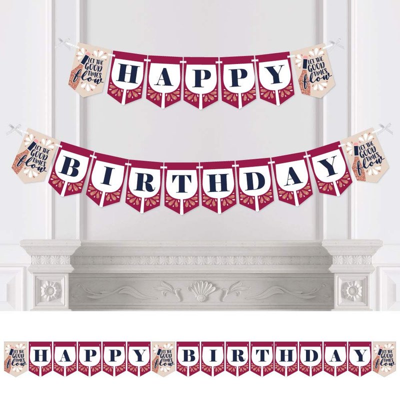 Big Dot of Happiness But First, Wine - Wine Tasting Birthday Party Bunting Banner - Birthday Party Decorations - Happy Birthday