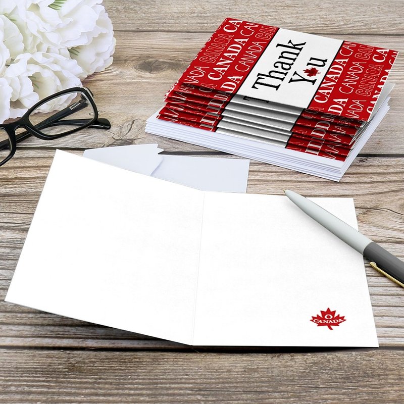 - PREMIUM THANK YOU CARDS: Canada Day thank you cards are professionally printed on heavy-duty card stock paper with a photo-like shine. They are hand-folded and individually inspected, then carefully packaged with our exclusive squiggle flap envelopes, making this red and white stationary set a must-have for Canada Day parties.