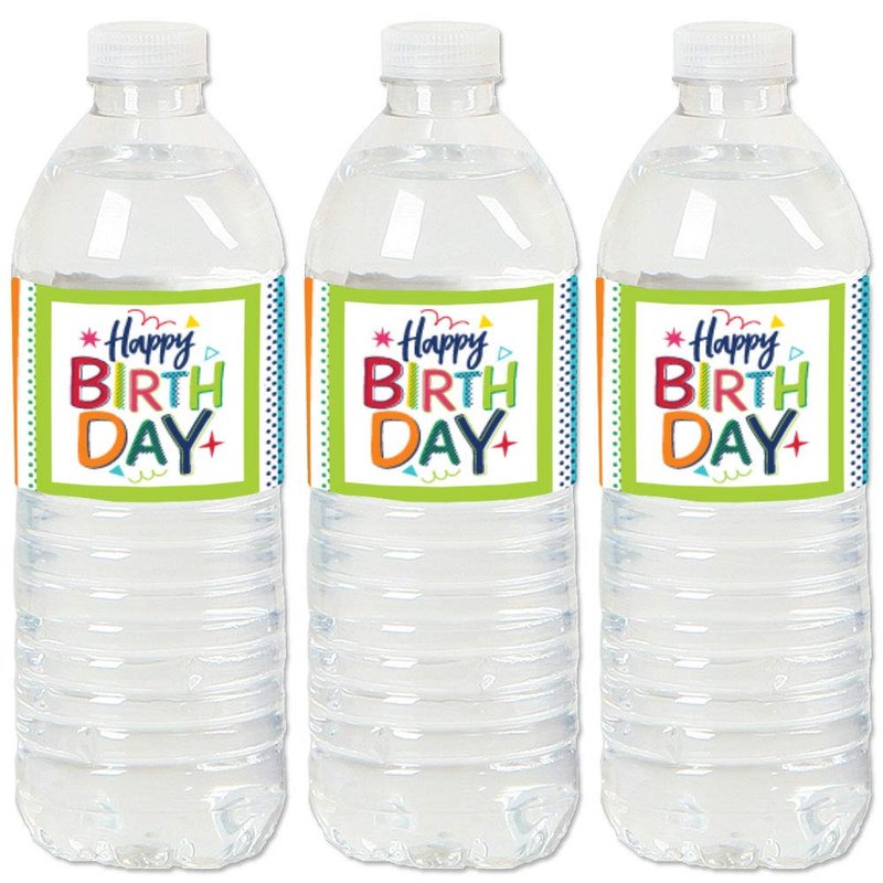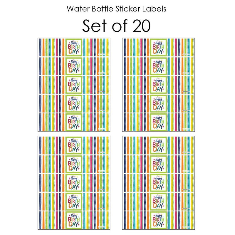 Big Dot of Happiness Cheerful Happy Birthday - Colorful Birthday Party Water Bottle Sticker Labels - Set of 20