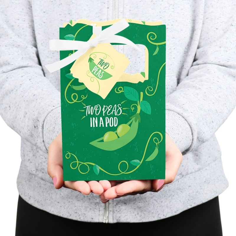 - PREMIUM PARTY FAVOR BOXES: Double the Fun - Twins Two Peas in a Pod party favor boxes are professionally printed on heavy-duty cardstock paper with a photo-like shine. They are hand-folded and individually inspected, then carefully packaged. Favor boxes will arrive flat, partially assembled. Finishing assembly is required but it is easy. Once assembled, add the Double the Fun - Twins Two Peas in a Pod gift tag with the included ribbon for perfect party favors!