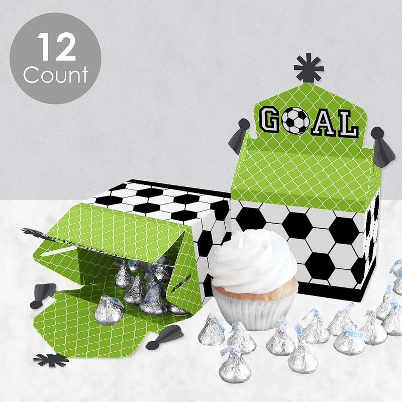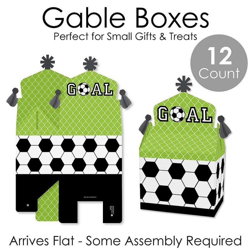 Big Dot of Happiness Goaaal - Soccer - Treat Box Party Favors - Baby Shower or Birthday Party Goodie Gable Boxes - Set of 12