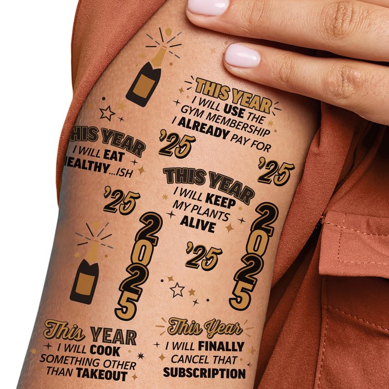 - 2025 New Year's Eve Party Favors: Get ready to bring the fun with these fake tattoos! Temporary tats are here for a good time, not a long time.