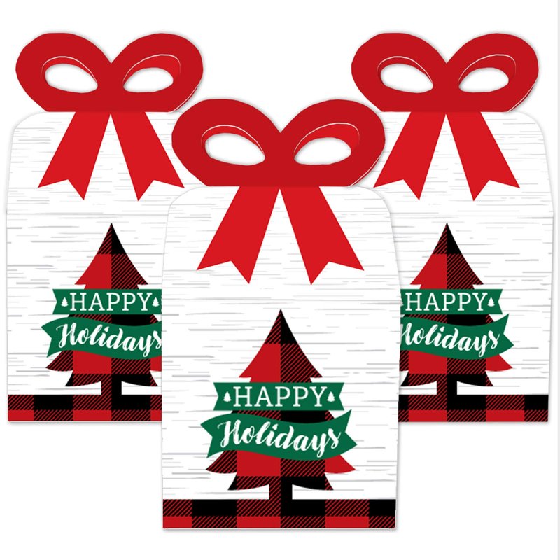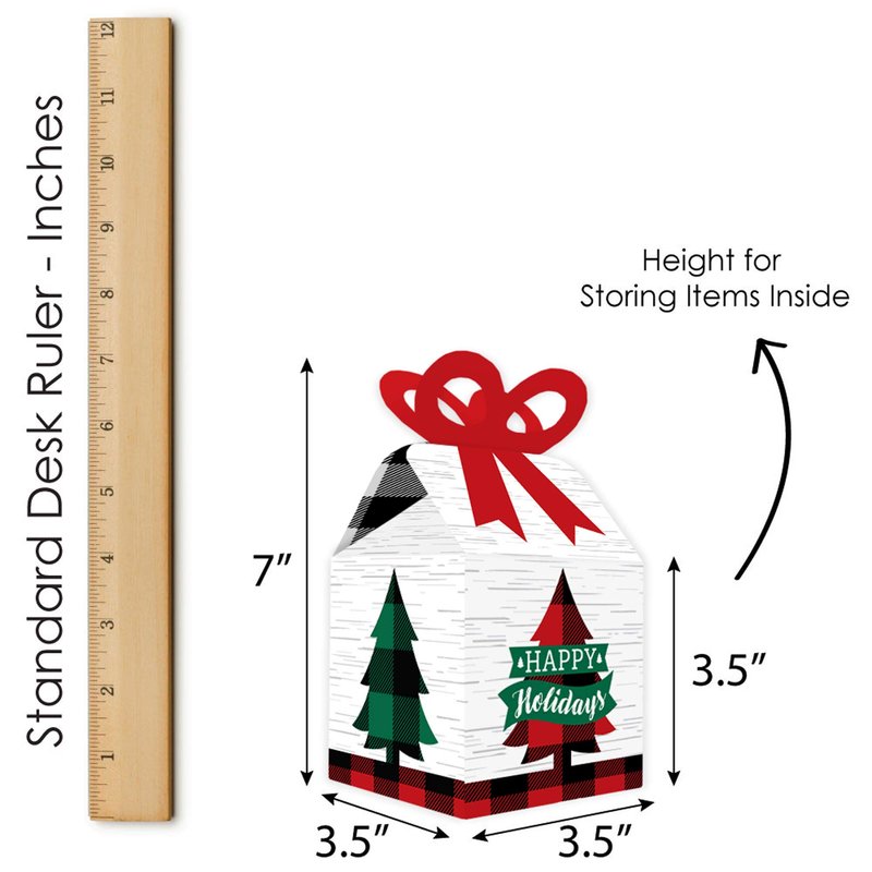 Big Dot of Happiness Holiday Plaid Trees - Square Favor Gift Boxes - Buffalo Plaid Christmas Party Bow Boxes - Set of 12