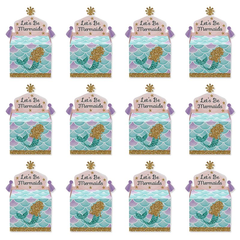 Big Dot of Happiness Let’s Be Mermaids - Treat Box Party Favors - Baby Shower or Birthday Party Goodie Gable Boxes - Set of 12