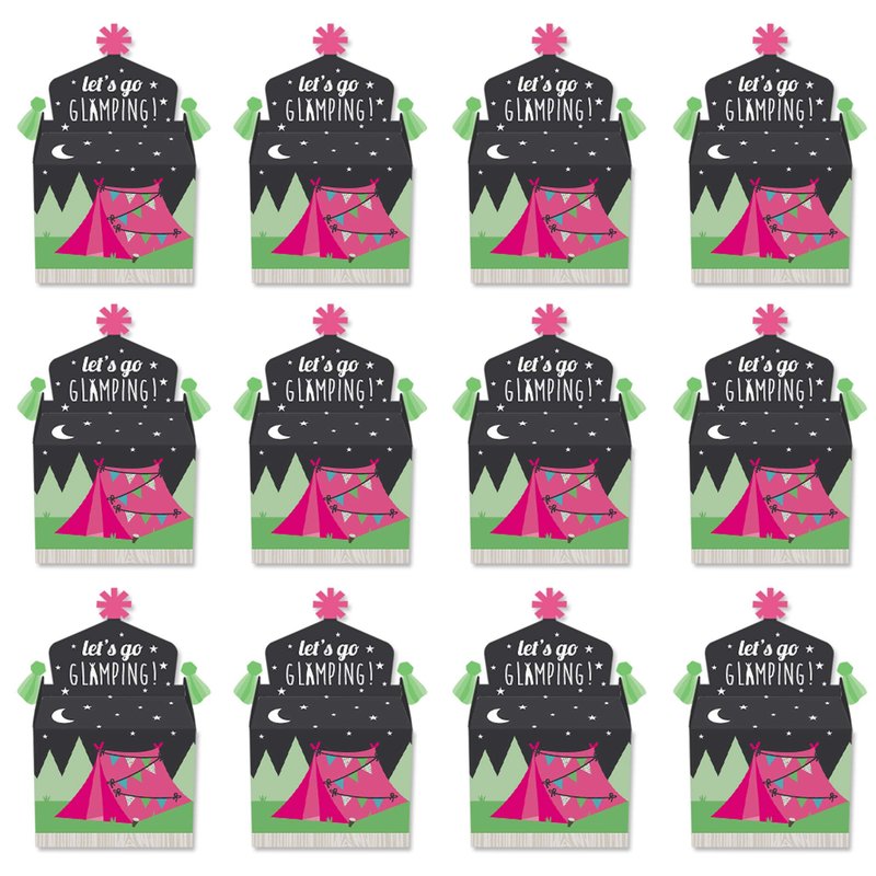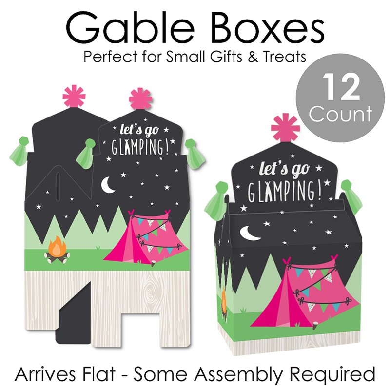 Big Dot of Happiness Let’s Go Glamping - Treat Box Party Favors - Camp Glamp Party or Birthday Party Goodie Gable Boxes - Set of 12