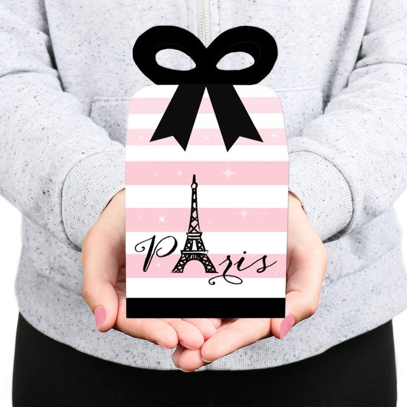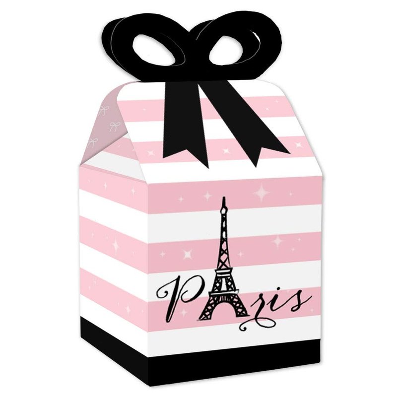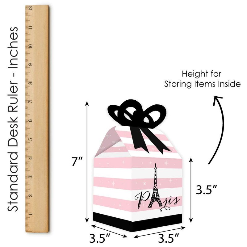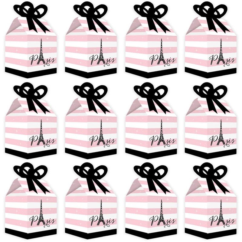 Big Dot of Happiness Paris, Ooh La La - Square Favor Gift Boxes - Paris Themed Baby Shower or Birthday Party Bow Boxes - Set of 12