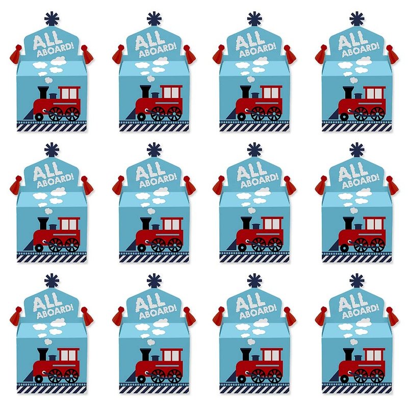 Big Dot of Happiness Railroad Party Crossing - Treat Box Party Favors - Steam Train Birthday Party or Baby Shower Goodie Gable Boxes - Set of 12