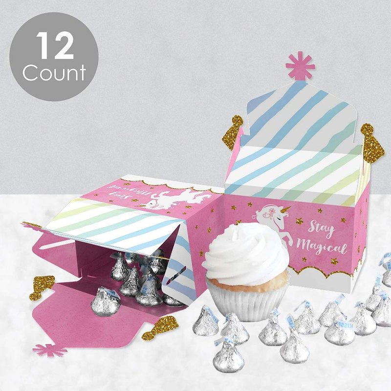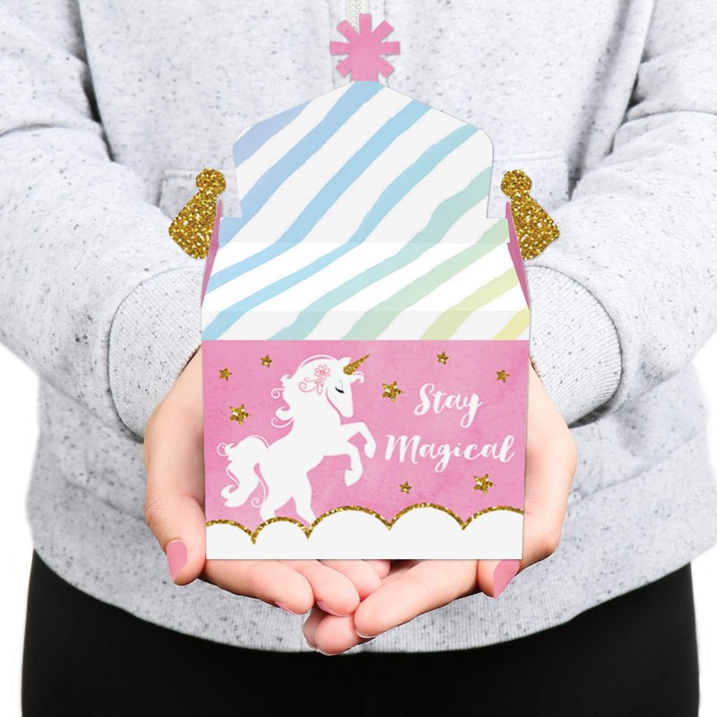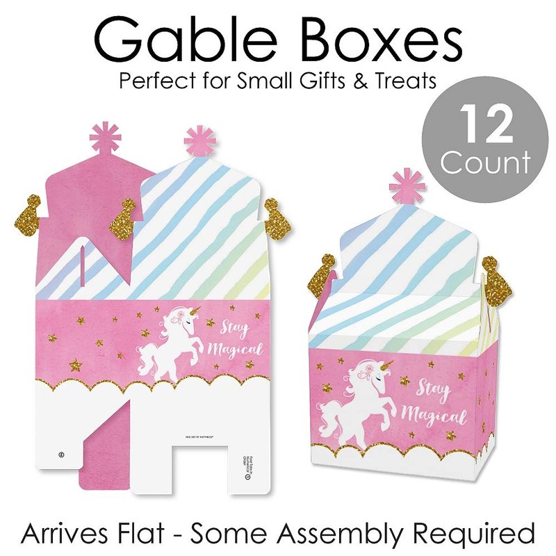 Big Dot of Happiness Rainbow Unicorn - Treat Box Party Favors - Magical Unicorn Baby Shower or Birthday Party Goodie Gable Boxes - Set of 12