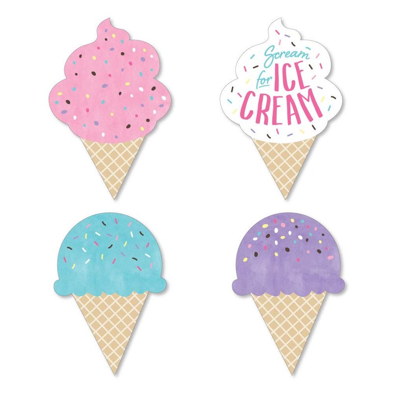 - HIGH-QUALITY PARTY SUPPLIES: Scoop Up The Fun - Ice Cream shaped cut outs are professionally printed on heavy-duty cardstock paper with a photo-like shine. They are individually inspected and carefully packaged by hand. Ice cream cone die cut paper shapes will arrive ready to use in your creative DIY party ideas!