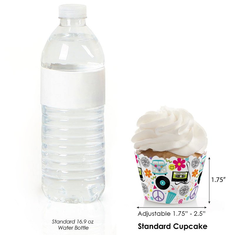 - PREMIUM PARTY SUPPLIES: Through the Decades cupcake wrappers are professionally printed on heavy-duty cardstock paper with a photo-like shine. They are individually inspected and carefully packaged by hand. Cupcake wrappers will arrive flat but easily turn into a perfect-sized circular wrap using the tab and slot closure. Decorative cupcake wrappers wrap around a finished cupcake for perfect party decorations!