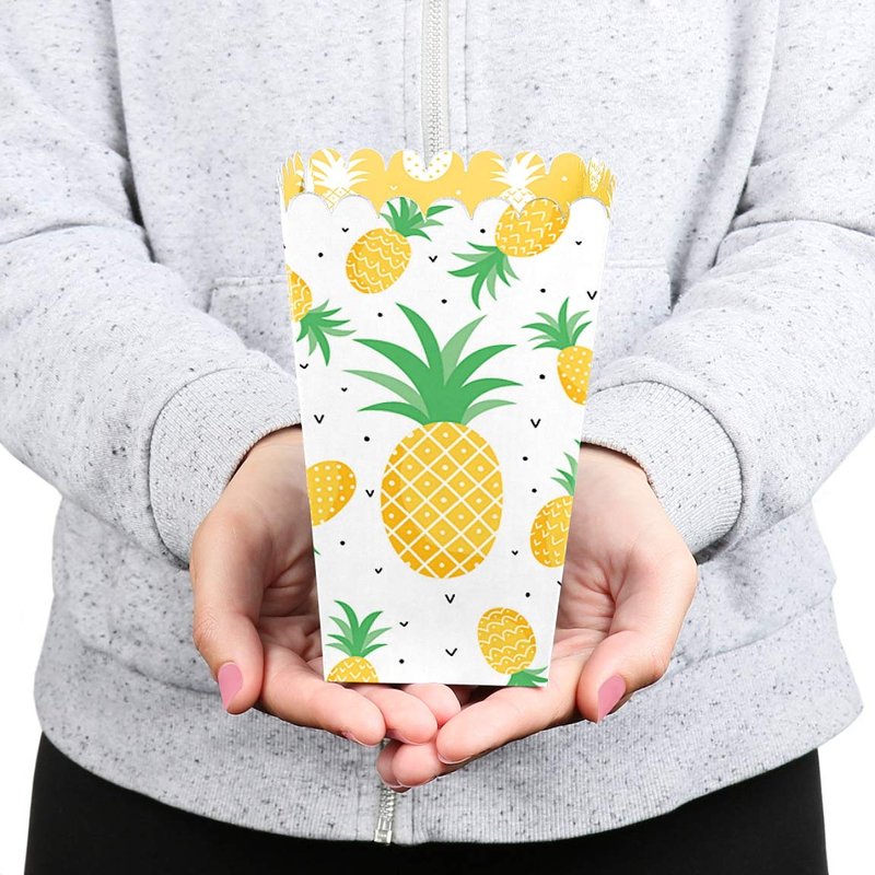 Big Dot of Happiness Tropical Pineapple - Summer Party Favor Popcorn Treat Boxes - Set of 12