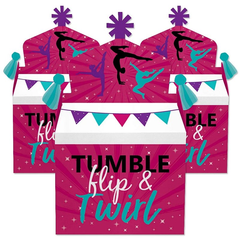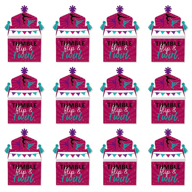 Big Dot of Happiness Tumble, Flip and Twirl - Gymnastics - Treat Box Party Favors - Birthday Party or Gymnast Party Goodie Gable Boxes - Set of 12