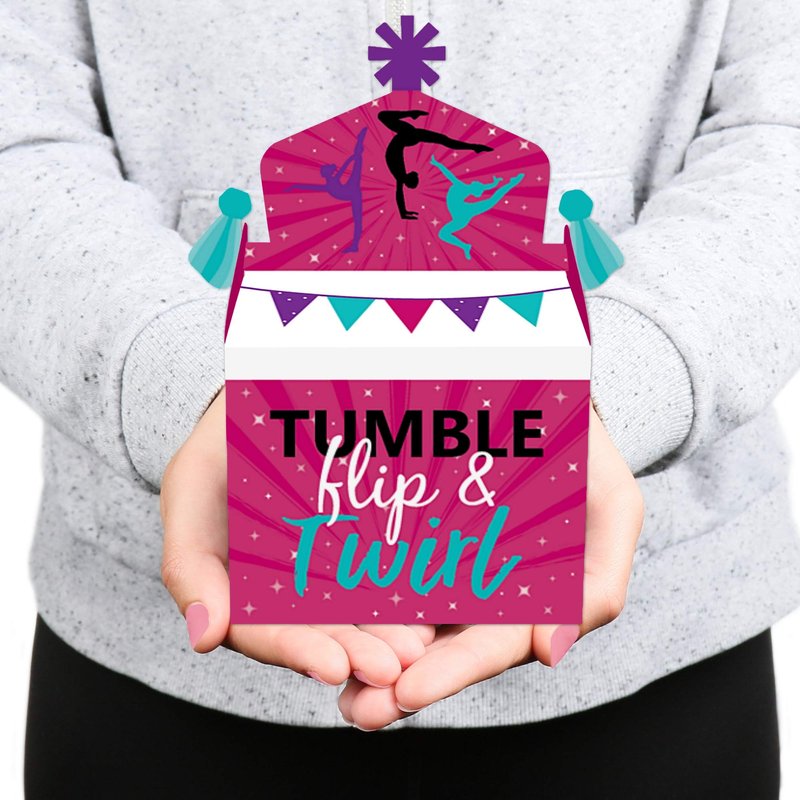 - MADE IN THE USA: Tumble, Flip and Twirl - Gymnastics or Birthday Party goodie gable boxes are designed and manufactured at our Wisconsin facility using materials that are Made in the USA.