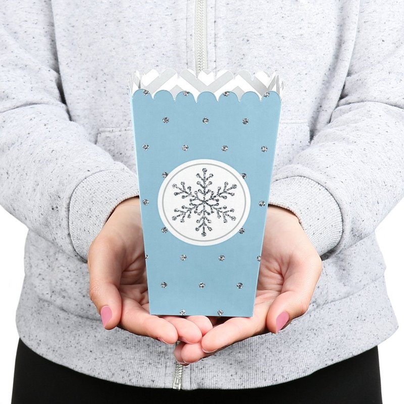 Big Dot of Happiness Winter Wonderland - Snowflake Holiday Party and Winter Wedding Popcorn Treat Boxes - Set of 12